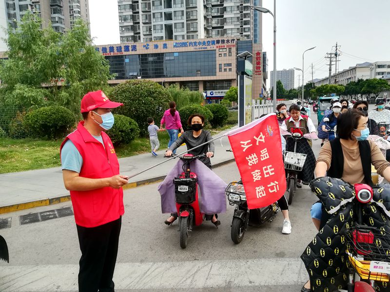在活动现场,文明志愿者们不顾炎热,身穿红色马甲,佩戴志愿服务小红帽,手持文明交通小红旗,严格按照《文明交通志愿服务活动工作规范》劝导行人和非机动车不乱穿马路、不乱闯红灯,劝导市民自觉遵守交通规则,提倡文明出行,营造良好交通秩序,认真履行文明交通志愿者职责。