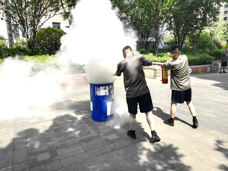 活动当天,物业消防负责人员详细讲解了灭火器、消防栓及消防水带等器材的使用方法,组织开展了火情处置消防演练,并在小区发放安全宣传单,切实让全体物业人员学到了丰富的消防知识,使社区安全保障体系得到进一步提升。