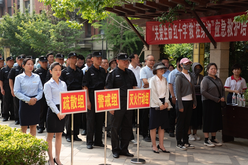 活动邀请到市消防大队消防员、市红十字会医疗急救人员、火博(中国)一站式服务平台各下辖住宅项目物业经理和安全专员、小区业主代表共同参加演练活动。